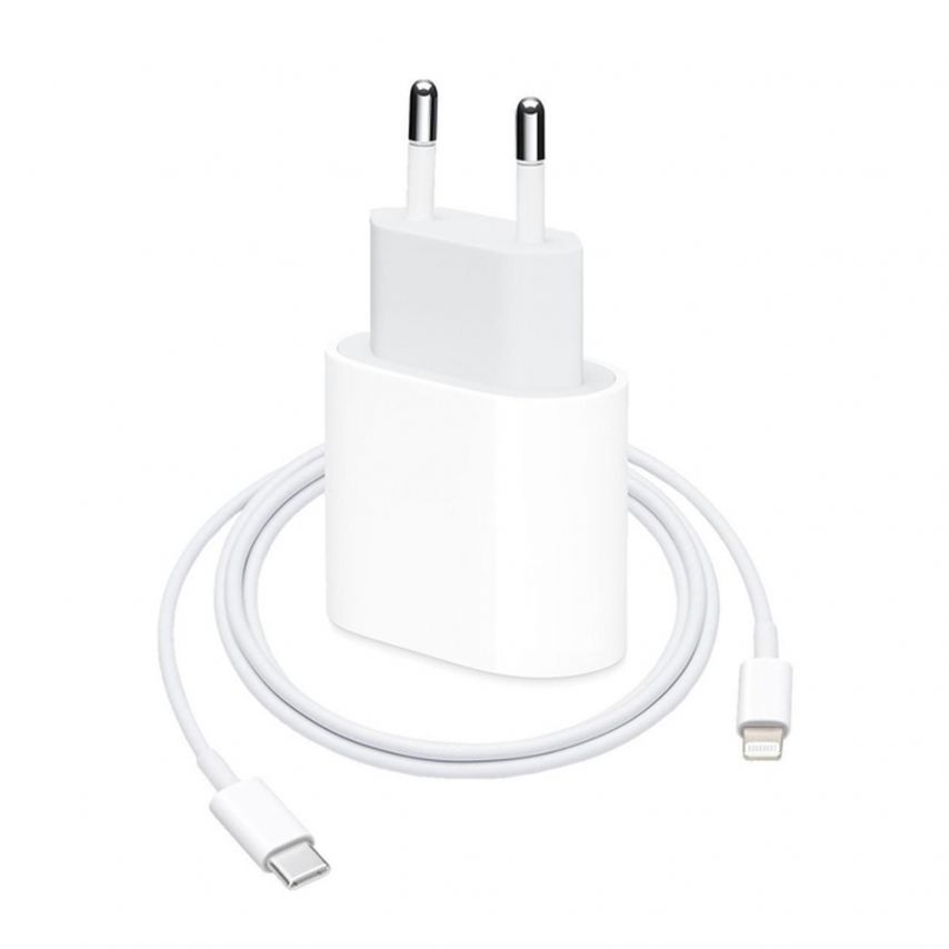 Мережевий зарядний пристрій (адаптер) для Apple iРhone A2347 PD / 20W + Data Cable Type-C to Lightning white High Quality carton box logo
